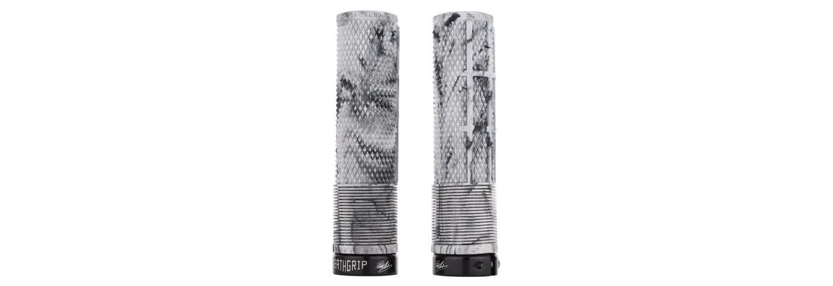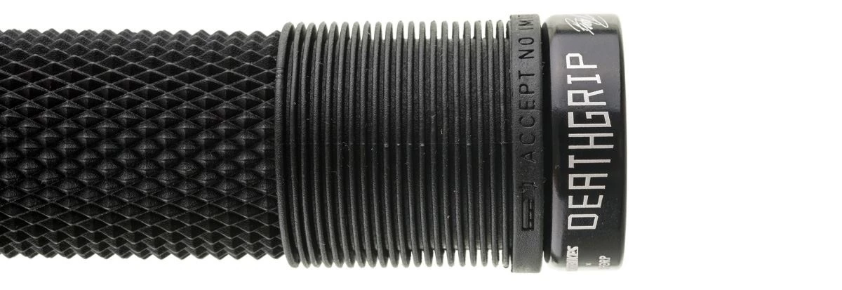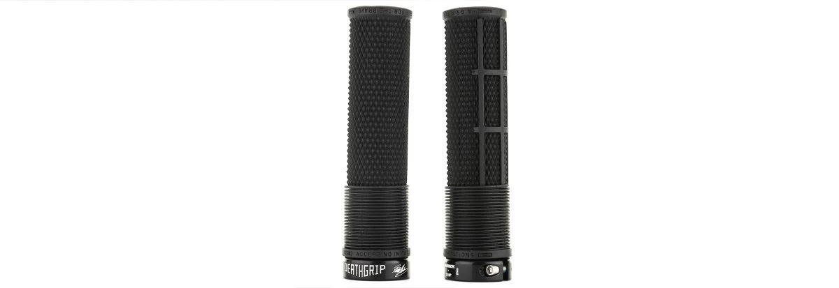 Poignées de vélo montagne Brendog Death de DMR sans bride, verrouillables, longueur de 135 mm, robustes et fermes parfaites pour le All-mountain, l’enduro et la descente. Achetez ces poignées de VTT, en ligne ou à notre magasin de Québec au Canada.